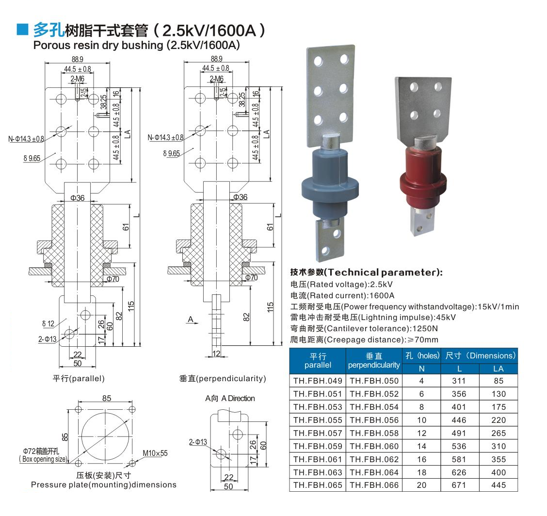 多孔樹脂干式套管2.5kV/1600A