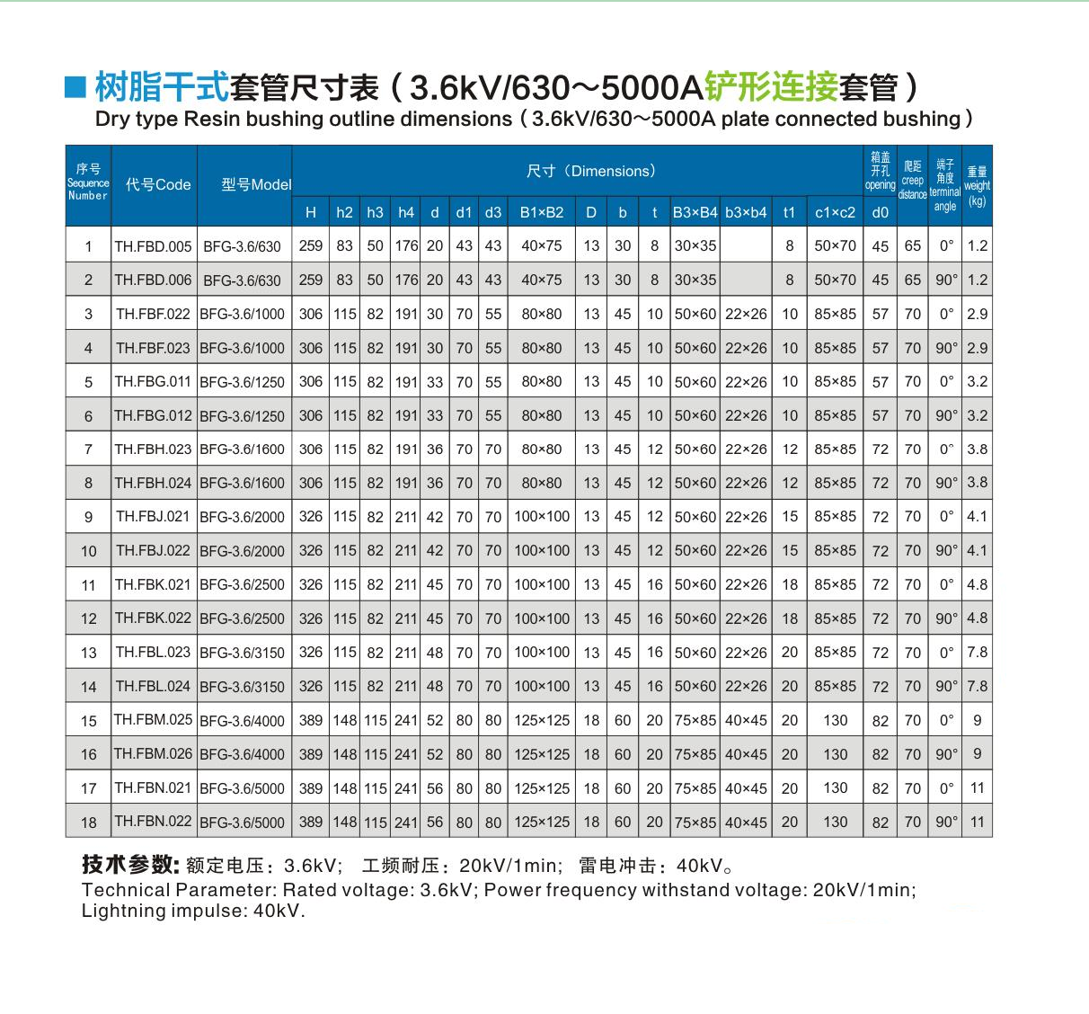 樹脂干式套管3.6kV/630~5000A鏟形連接套管