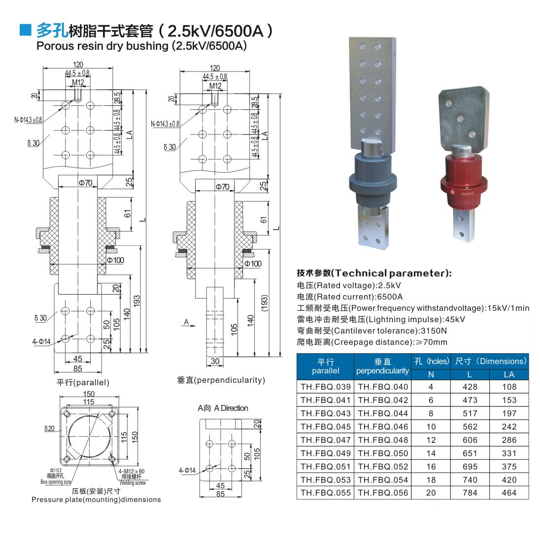 多孔樹脂干式套管2.5kV/6500A