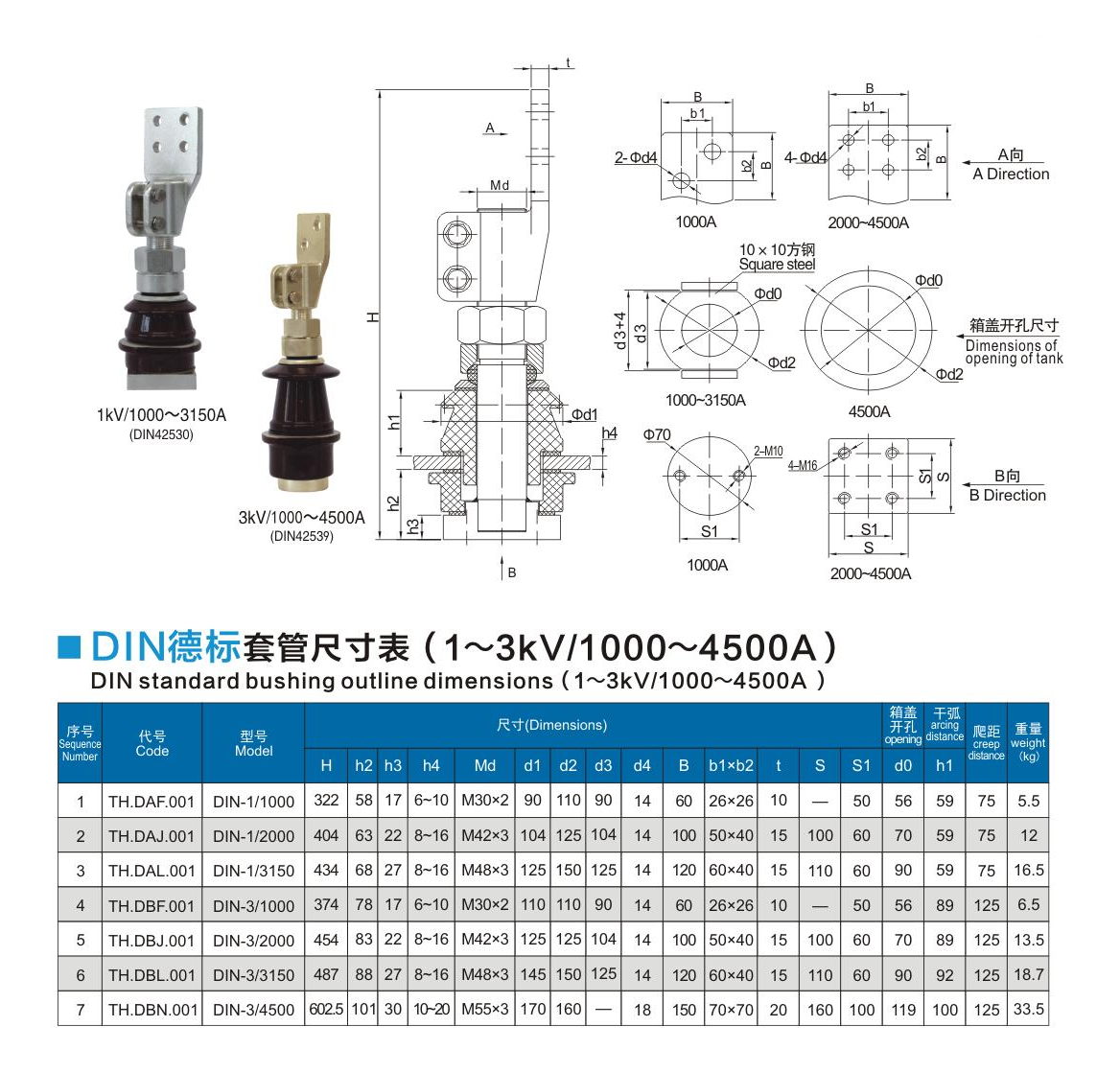 DIN德標(biāo)套管1~3kV/1000~4500A