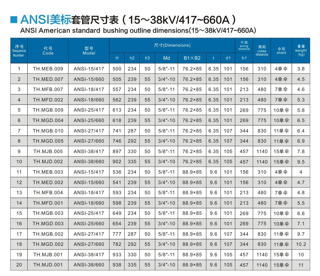 ANSI美標(biāo)套管15~38kV/417~660A
