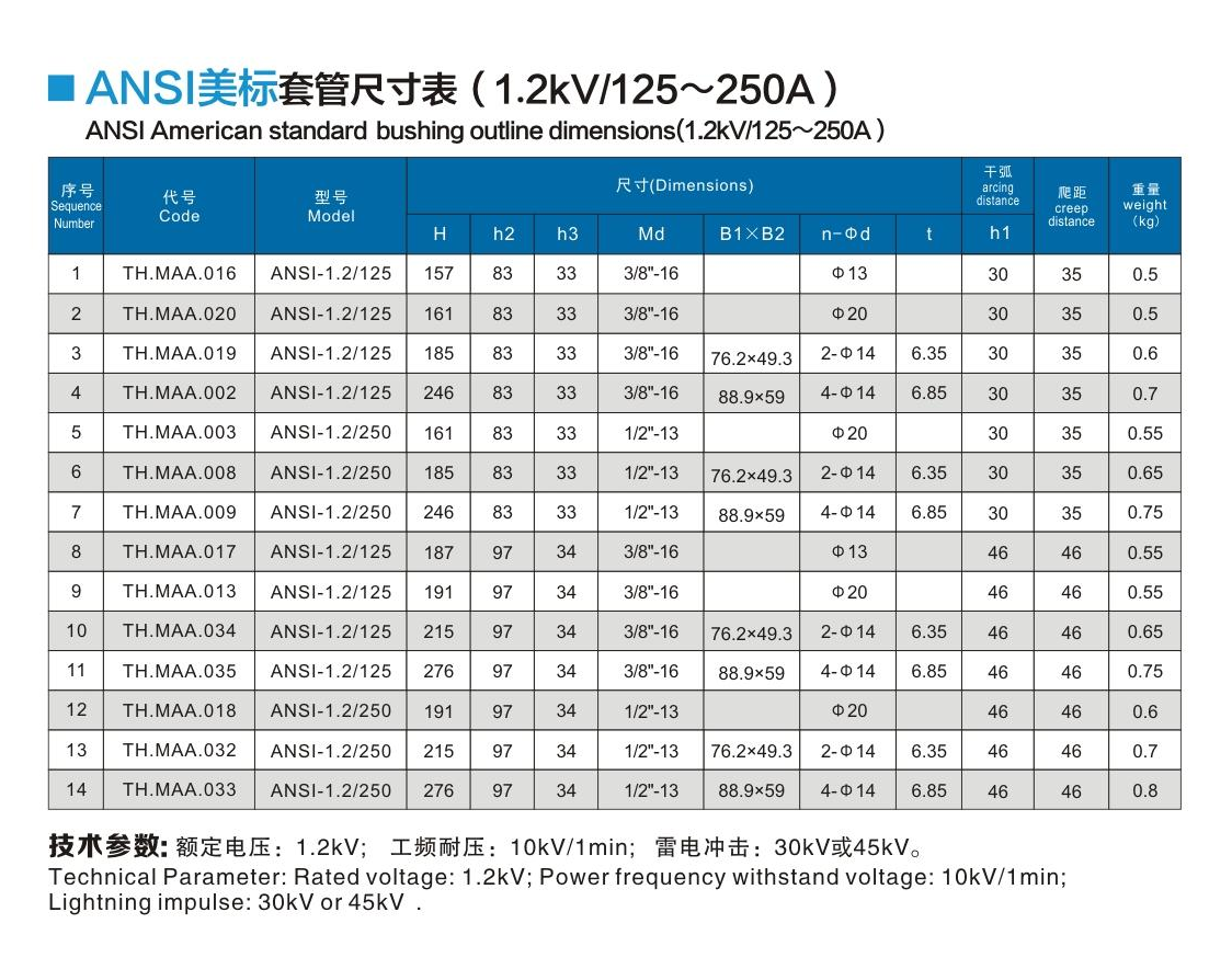 ANSI美標(biāo)套管1.2kV/125~250A