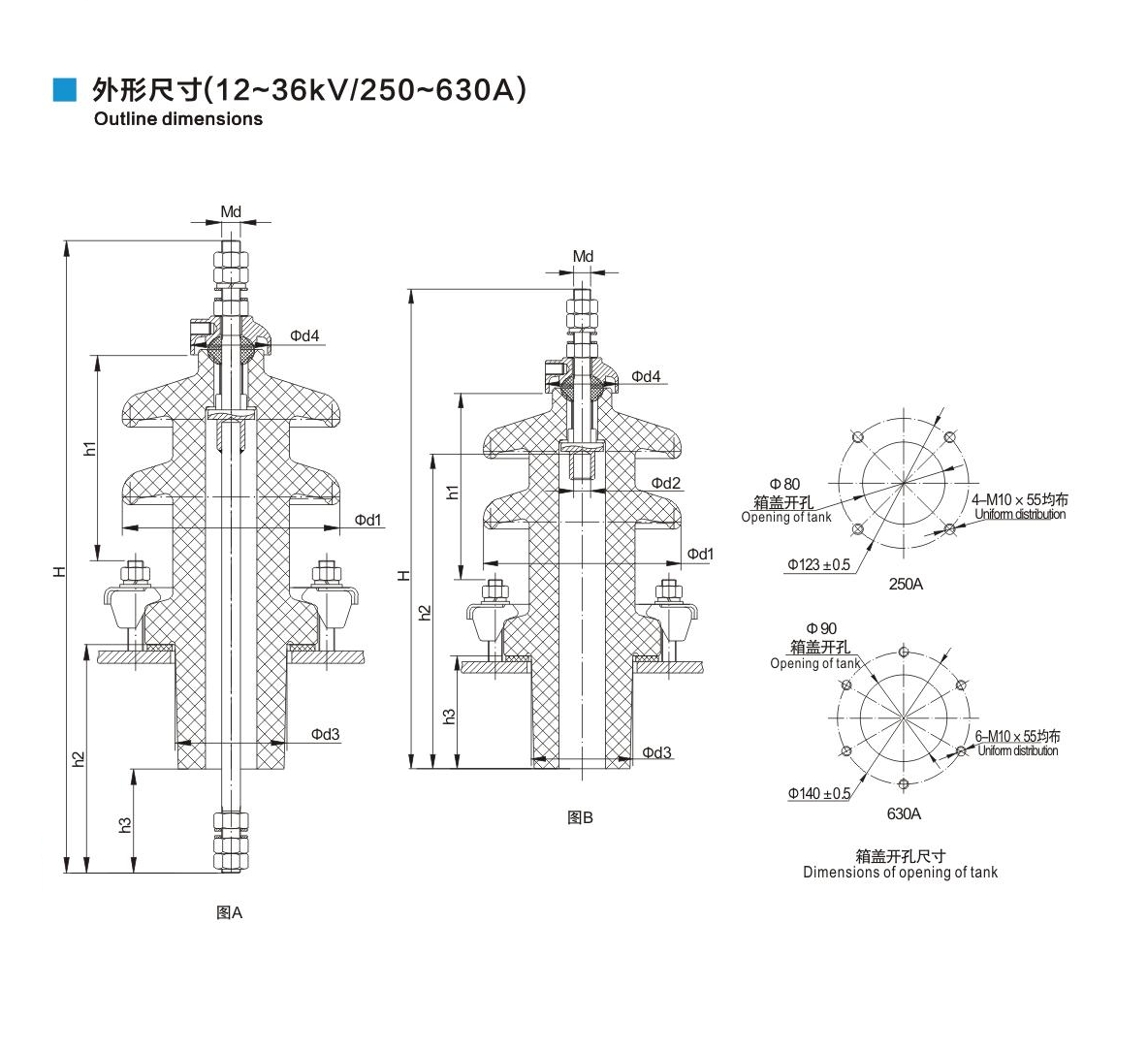 EN歐標(biāo)套管尺寸表12~36kV /250~630A套管