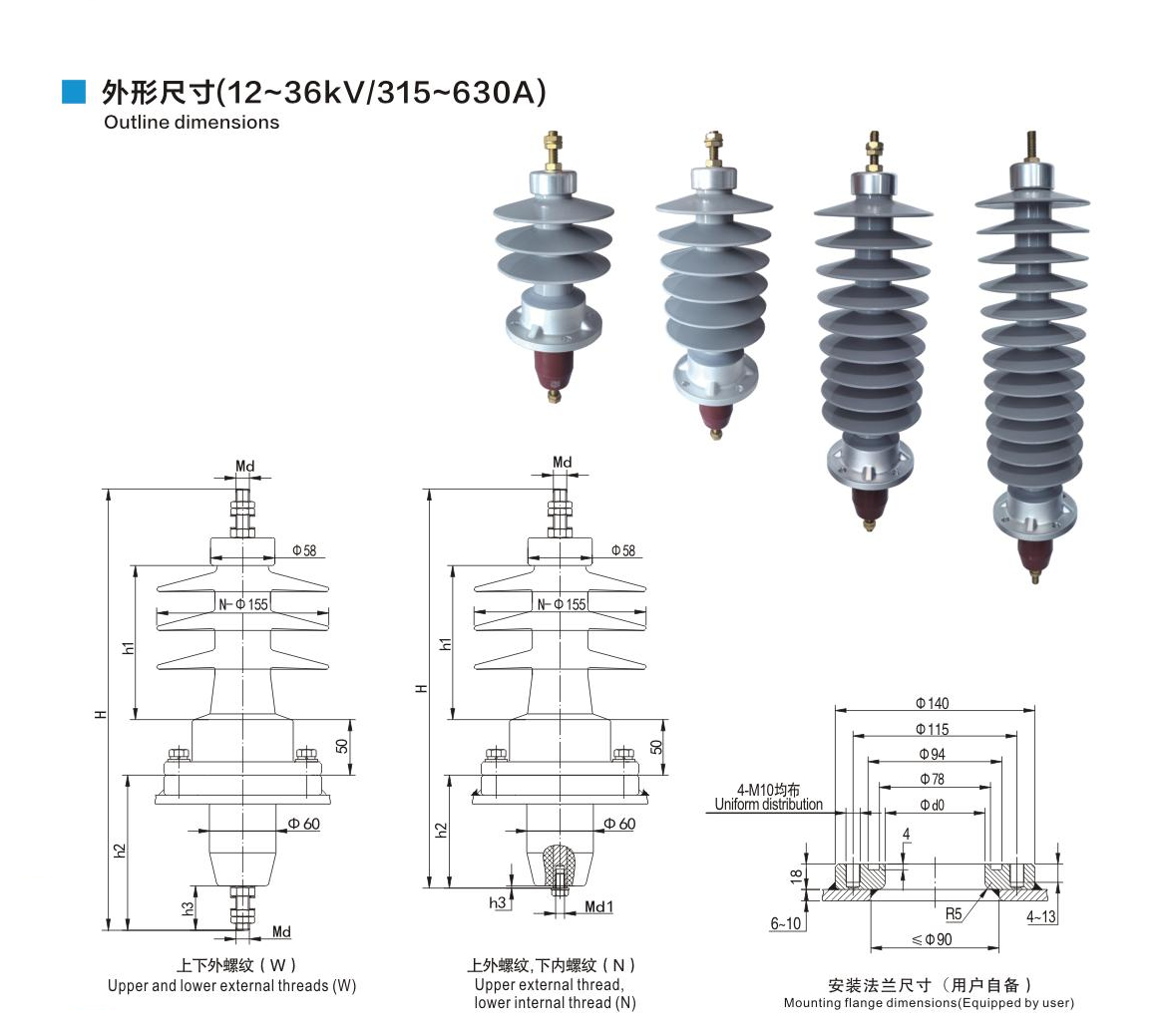 鋁法蘭硅橡膠套管12~36kV/315~630A