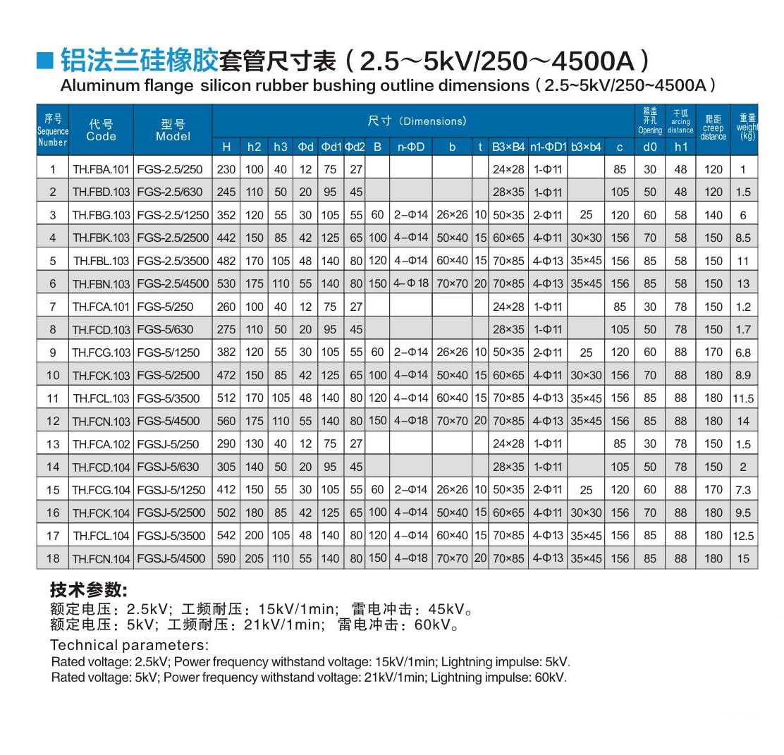 鋁法蘭硅橡膠套管2.5~5kV/250~4500A